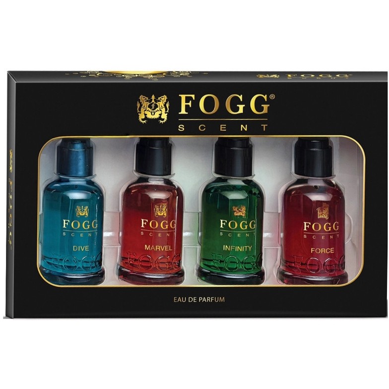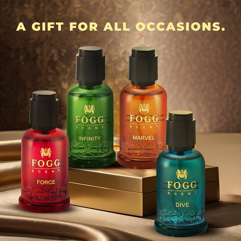Get the Fogg Scent Gift Set featuring Dive, Marvel, Infinity, and Force. Four premium Eau De Parfums in one luxury box. Perfect for daily wear or gifting!"Why settle for one when you can have four? The Fogg Scent Gift Set features a powerful lineup of Eau De Parfums: the fresh Dive, the energetic Marvel, the timeless Infinity, and the bold Force. Each bottle is crafted to provide a long-lasting, premium scent experience that Fogg is famous