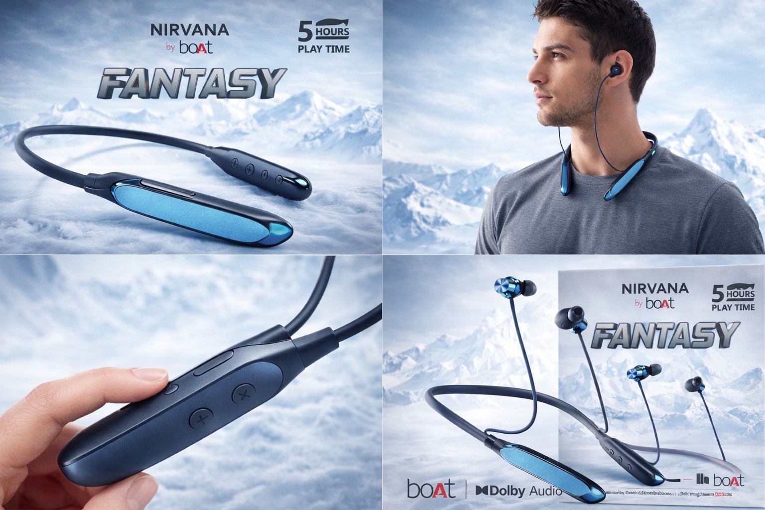 Experience immersive sound with the boAt Nirvana Fantasy wireless neckband earphones, powered by Dolby Audio technology for crystal-clear music and deep bass. Designed for all-day comfort, this lightweight neckband offers up to 500 hours of playtime, making it perfect for workouts, travel, and daily use. Enjoy stable connectivity, stylish premium design, and reliable performance from a trusted audio brand. Upgrade your music experience with boAt Nirvana Fantasy today.