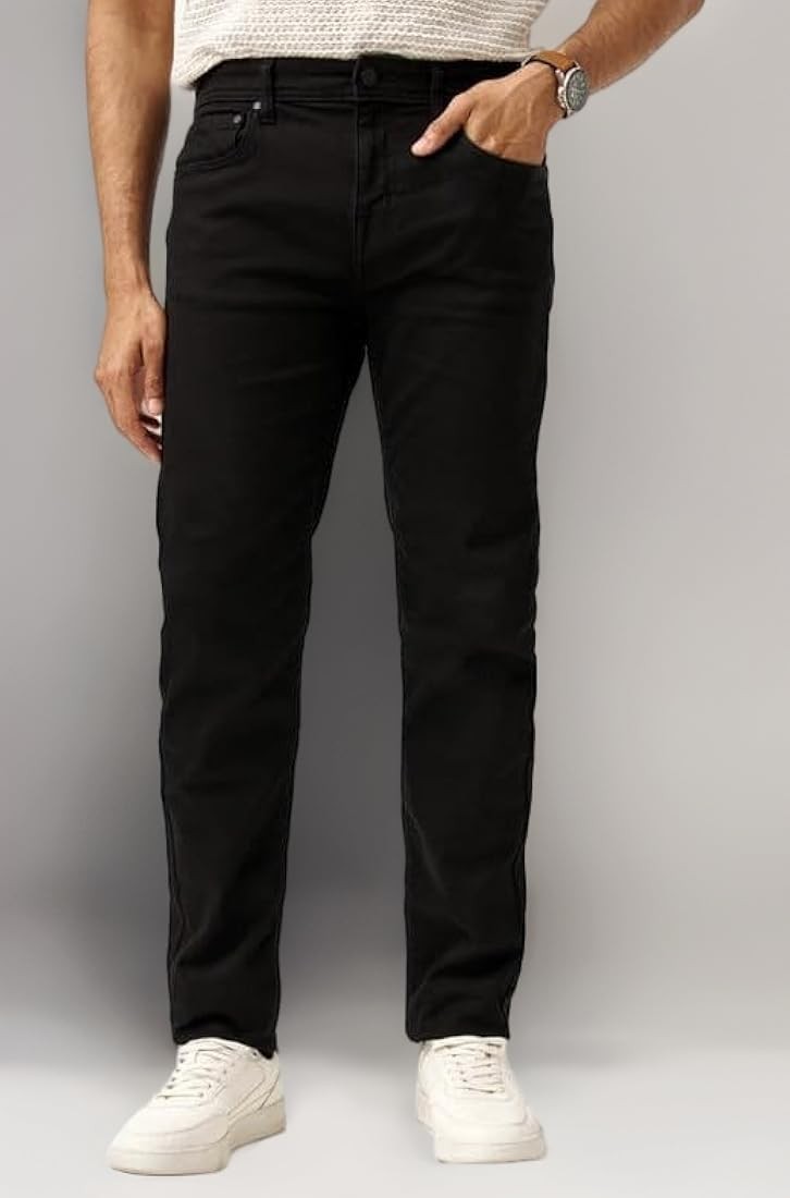 Men's Jet Black Slim Fit Stretchable Denim Jeans | Mid-Rise Casual Pants