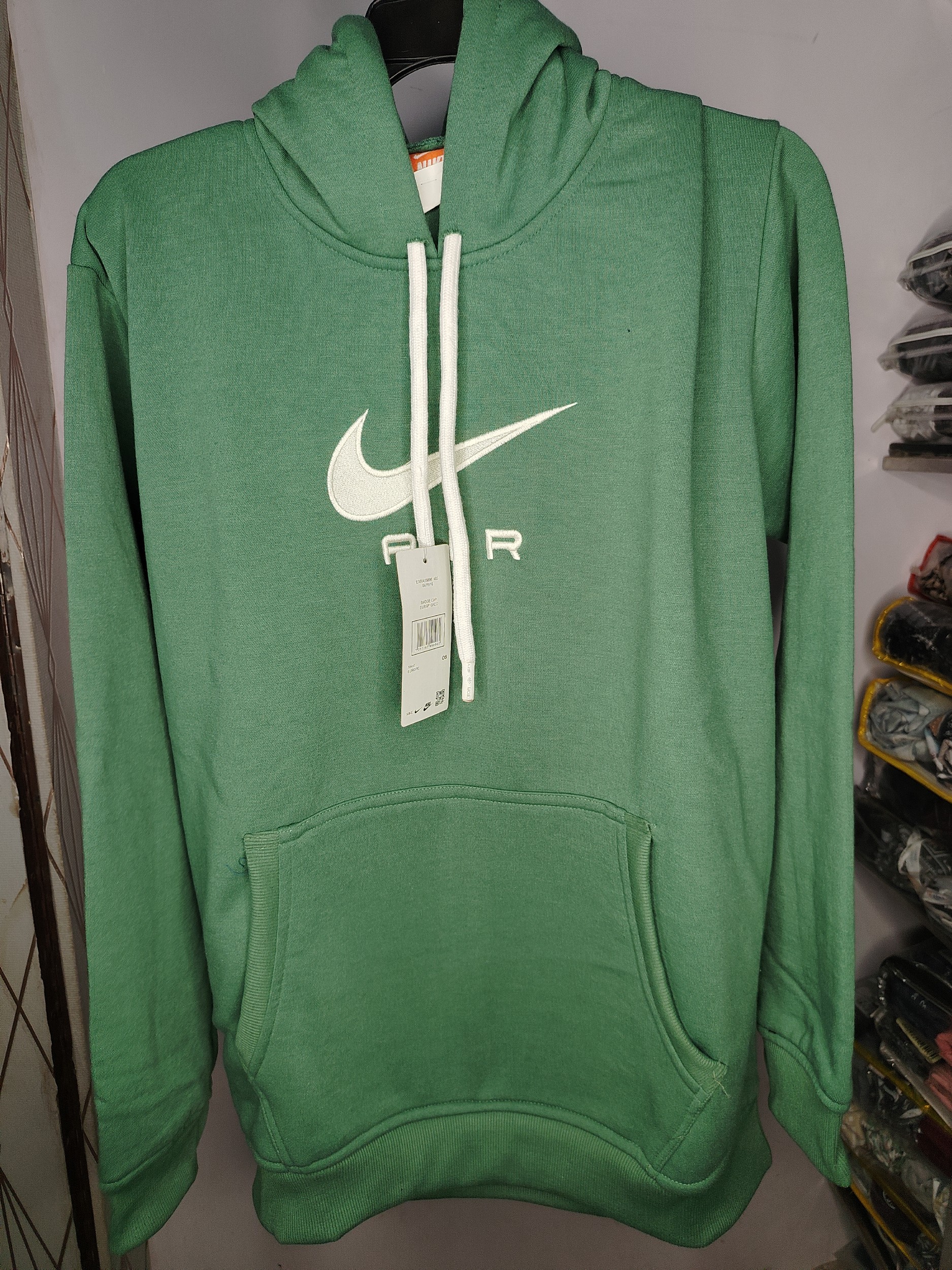 This is a Nike Air Men's Fleece Pullover Hoodie in green, designed for casual comfort and athletic style.