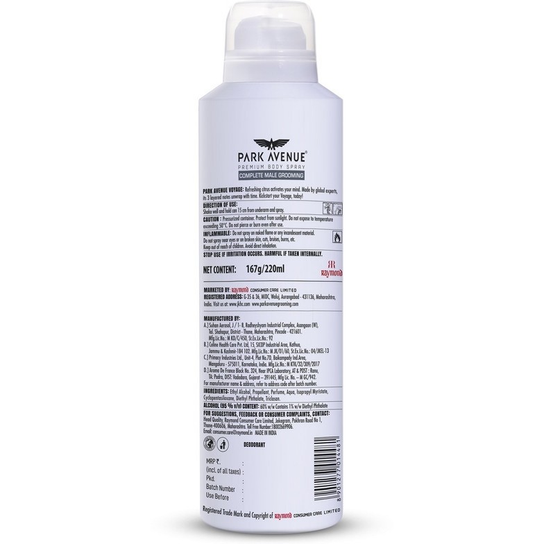 Ye premium body spray khas taur par un men ke liye design kiya gaya hai jo active lifestyle jeete hain. Chahe wo lambi office meetings hon ya intense gym sessions, Park Avenue Voyage ki long-lasting fragrance aapko saara din confident aur fresh rakhti hai.