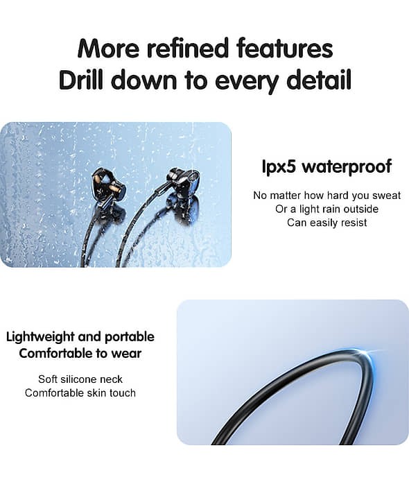 Designed for the active lifestyle, this Premium Wireless Neckband delivers a powerful audio experience while keeping you connected on the go. Whether you're at the gym, commuting, or working, enjoy the perfect balance of style, durability, and high-quality sound.