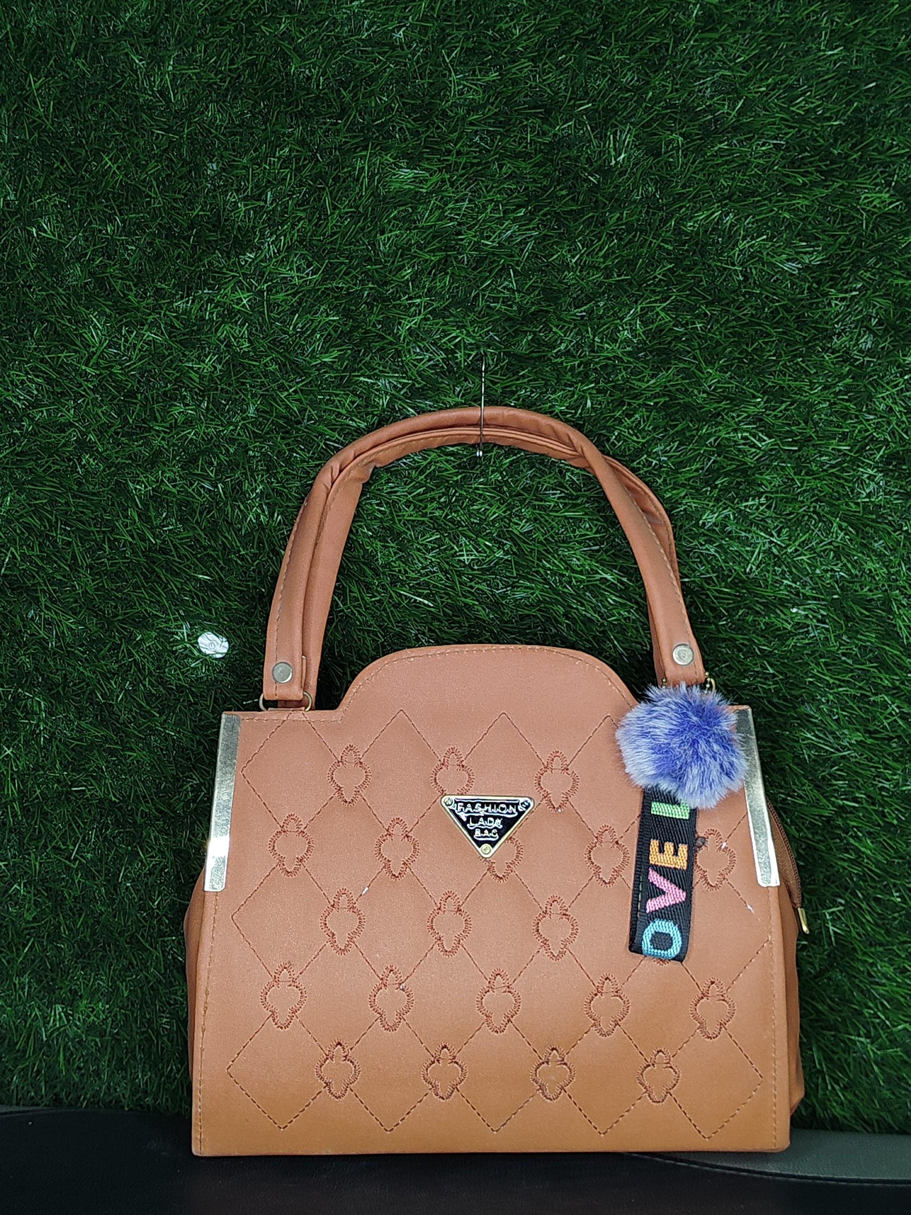 Elevate your everyday style with this chic and versatile brown handbag. Crafted from premium-quality faux leather, this satchel-style purse features an elegant quilted pattern with a distinctive metallic logo emblem on the front.