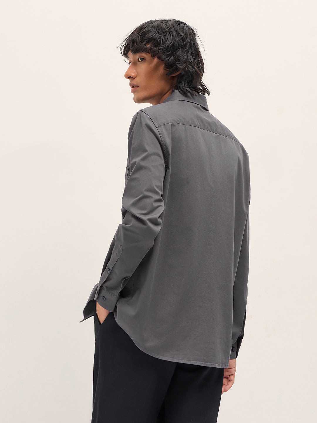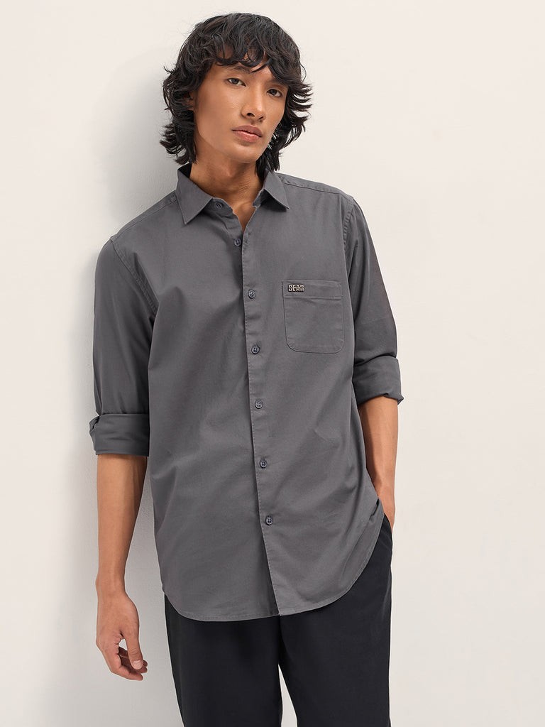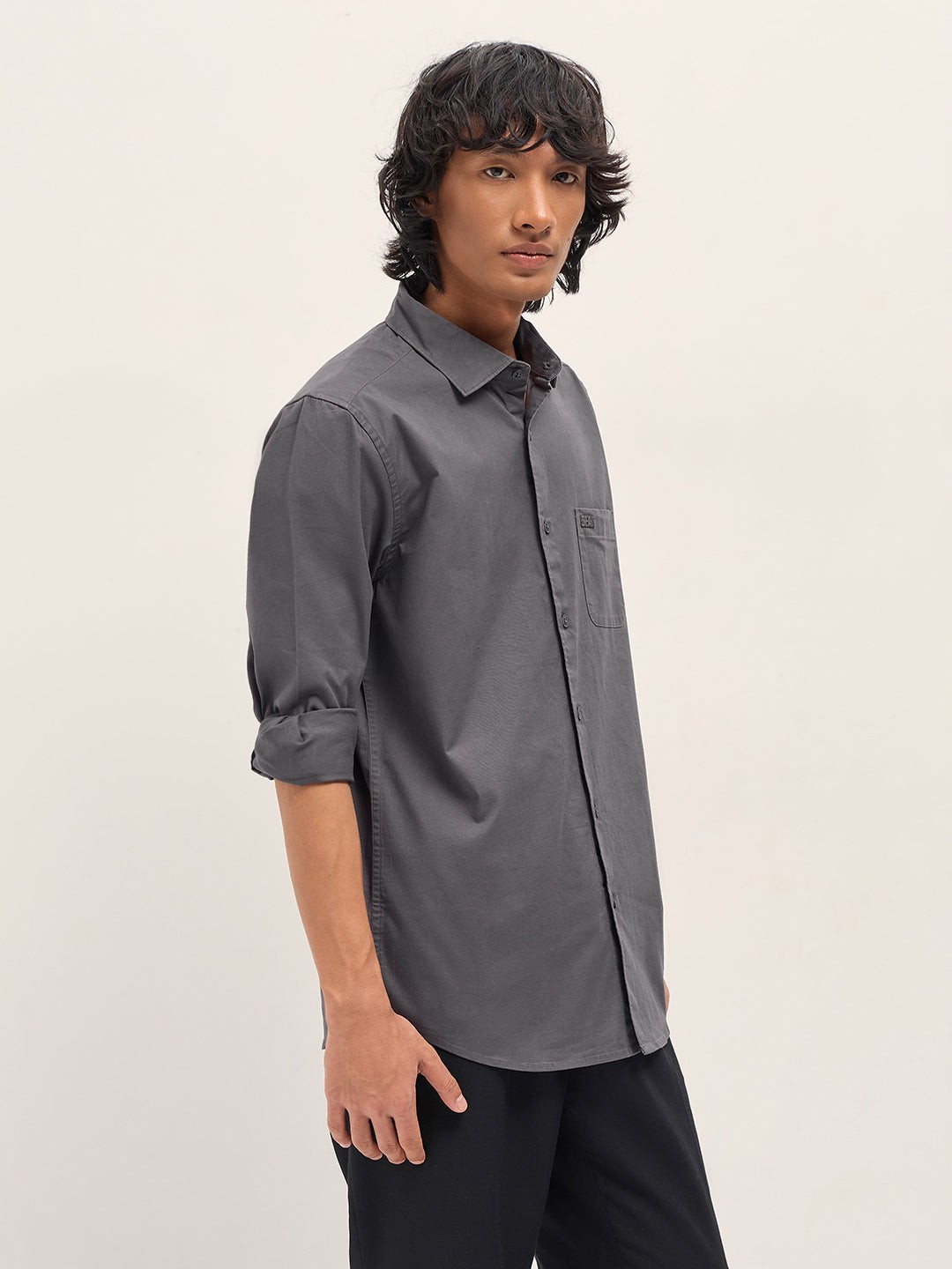 Urbano Fashion Men's Dark Grey Cotton Full Sleeve Regular Fit Casual Solid Shirt