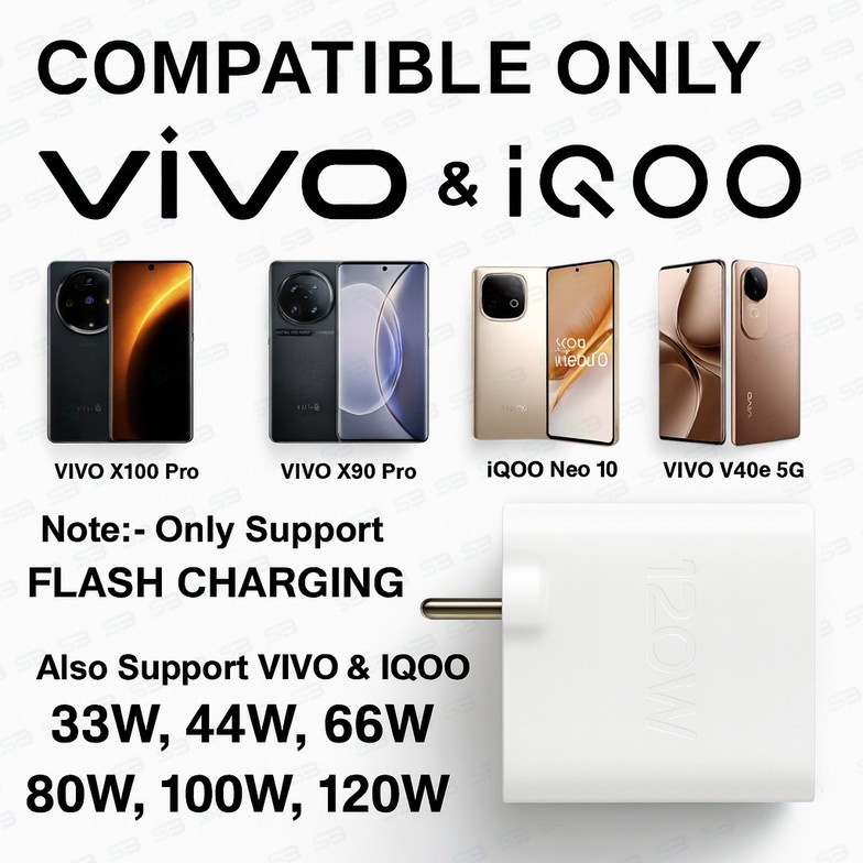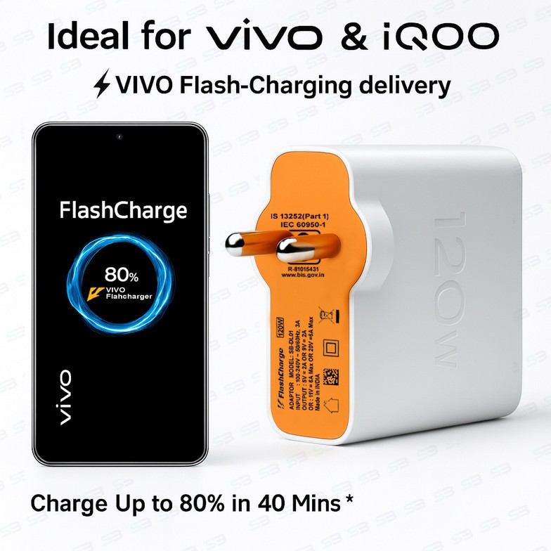 Apne Vivo smartphone ki asli speed ko unlock karein is Official-grade 120W FlashCharge Adapter ke saath. Ye charger sirf fast nahi, balki intelligent aur safe bhi hai, jo aapke device ko garmi aur voltage se bachaate hue lightning-fast speed deta hai.