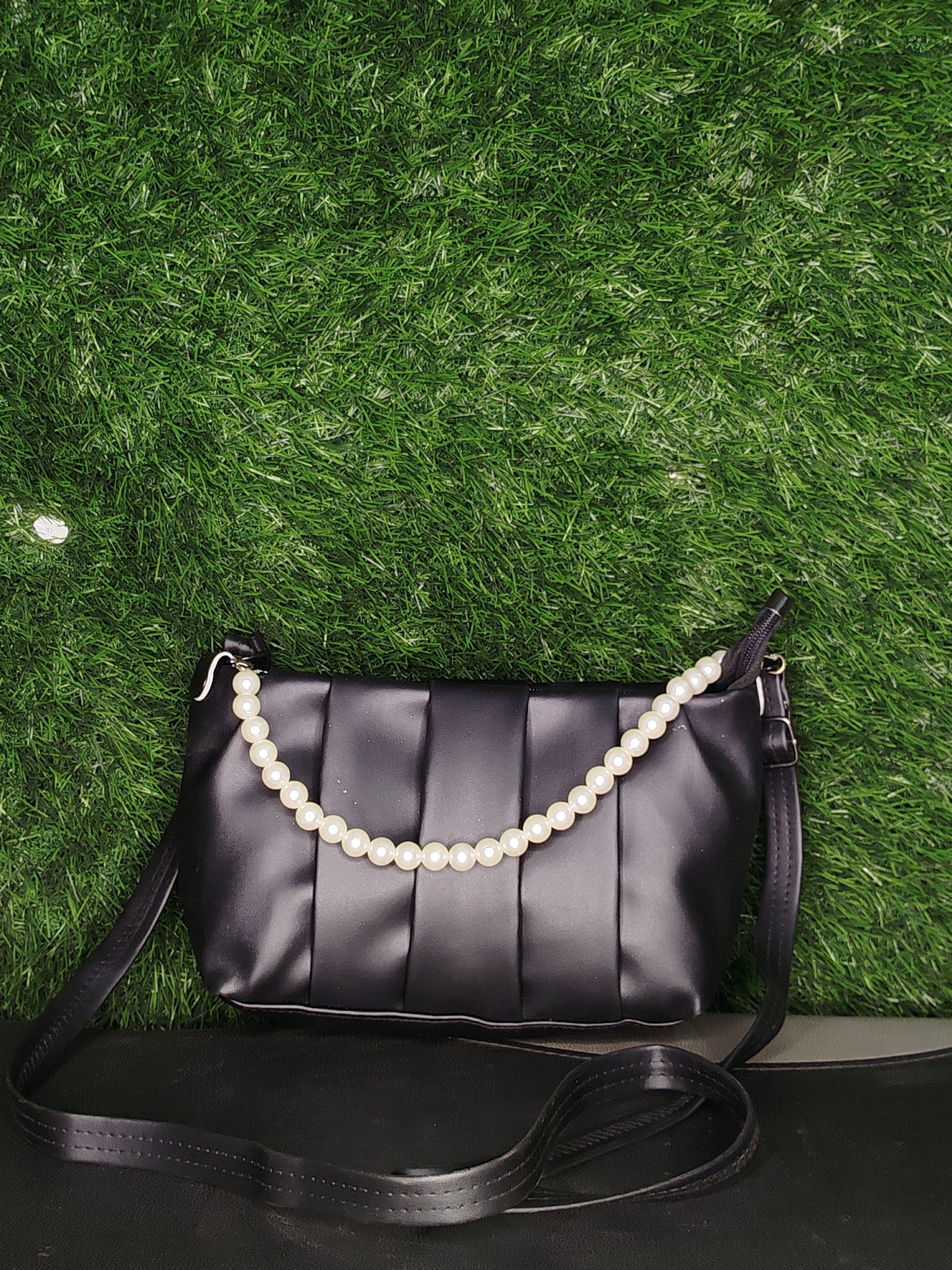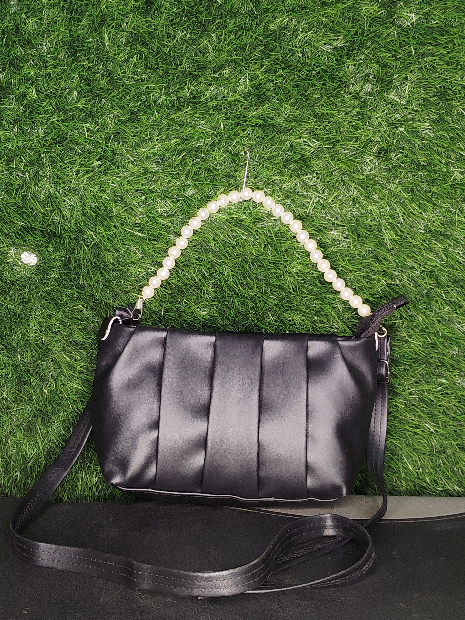 Dual Carrying Options: Comes with a elegant, non-detachable faux pearl top handle for a sophisticated clutch look, and a detachable, adjustable faux leather long strap for use as a shoulder or crossbody bag.